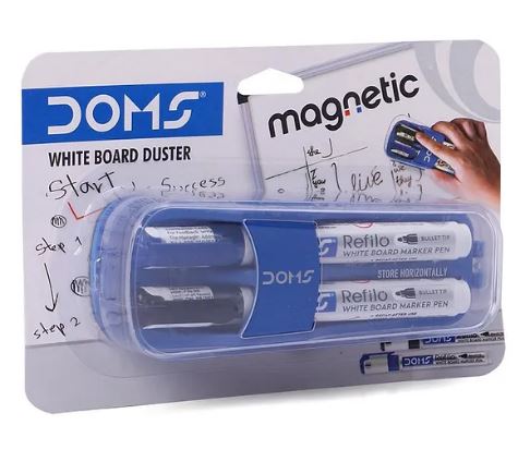 🧲 DOMS Magnetic White Board Duster + 2 Markers (Blue & Black)