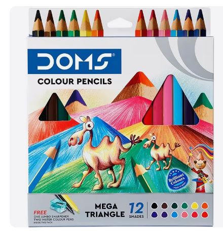 ✏️ DOMS Mega Triangle Pencil – 12 Vibrant Shades