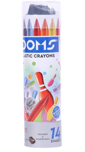DOMS Plastic Crayons Round Tin Pack in 14 & 28 Shades